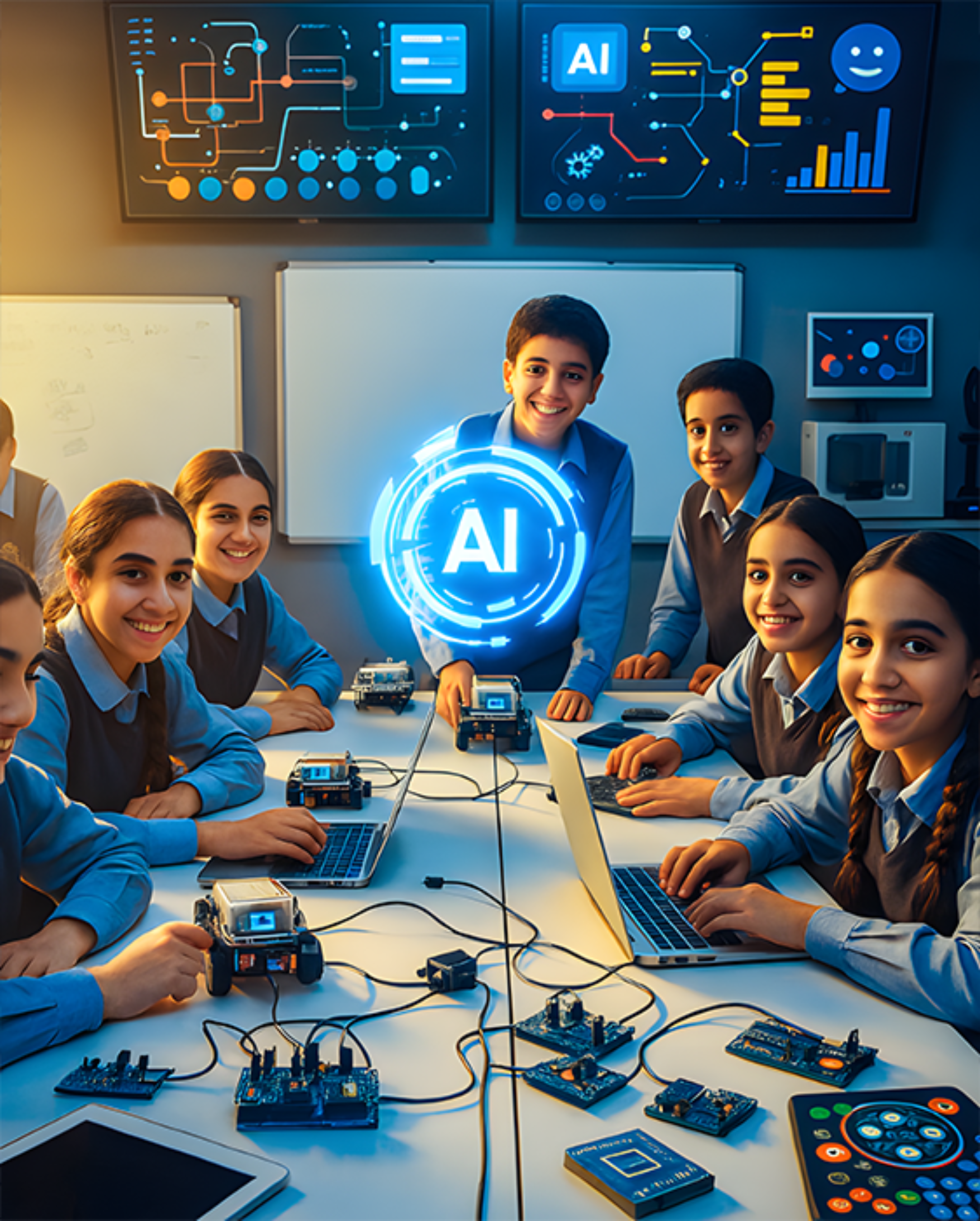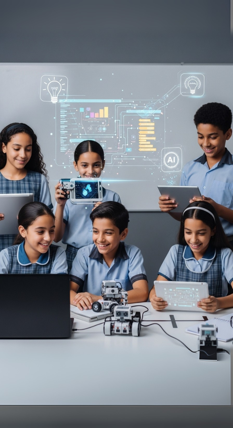 من خلال مشاريع تقنية واقعية ولوحات متابعة متقدمة، يحصل الطلاب على تجربة شاملة تساعدهم على فهم التكنولوجيا بشكل أعمق وتجعل المدرسة في طليعة المؤسسات التعليمية الذكية.;